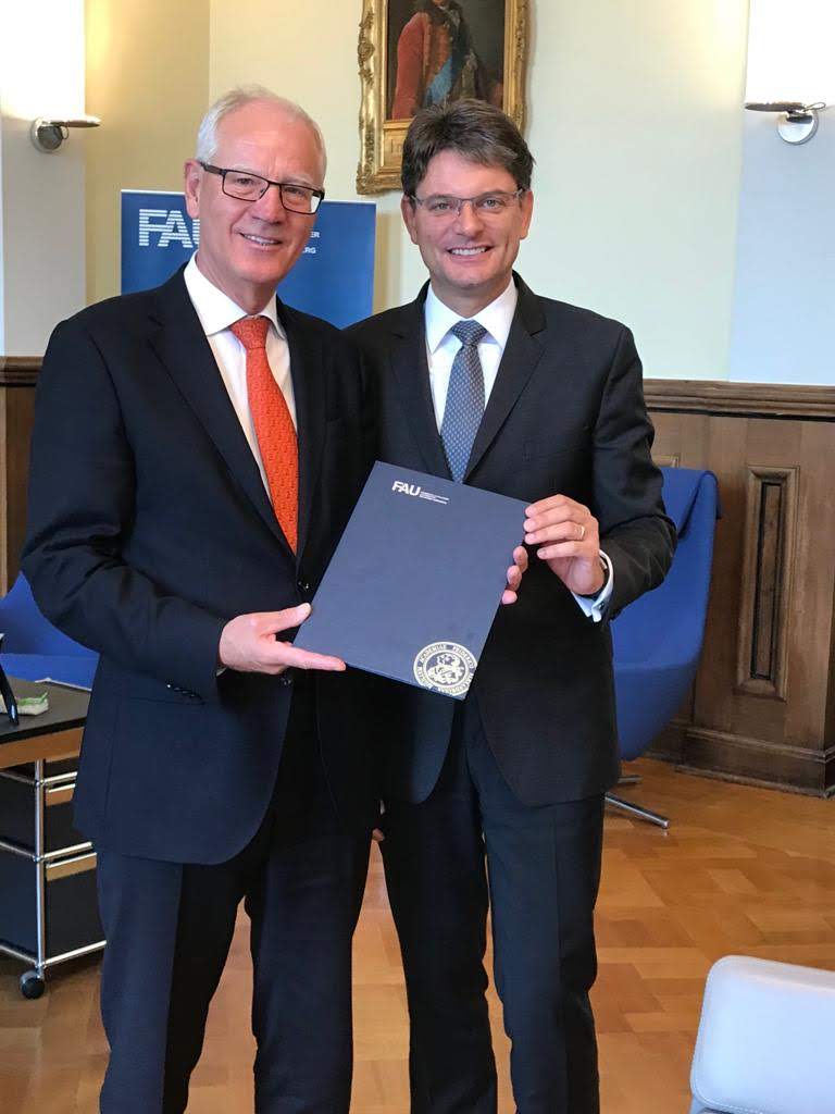 die Verleihung der Ehrenbürgerwürde durch die Stadt Erlangen sowie die Laudatio durch den langjährigen Ministerpräsidenten des Freistaates Bayern, Herrn Dr. Edmund Stoiber, war für mich ein besonderer Höhepunkt meines bisherigen Lebens. Ich danke insbesondere meiner Frau Angelika, dass sie mich durch alle Höhen und Tiefen begleitet und immer kraftvoll unterstützt hat.