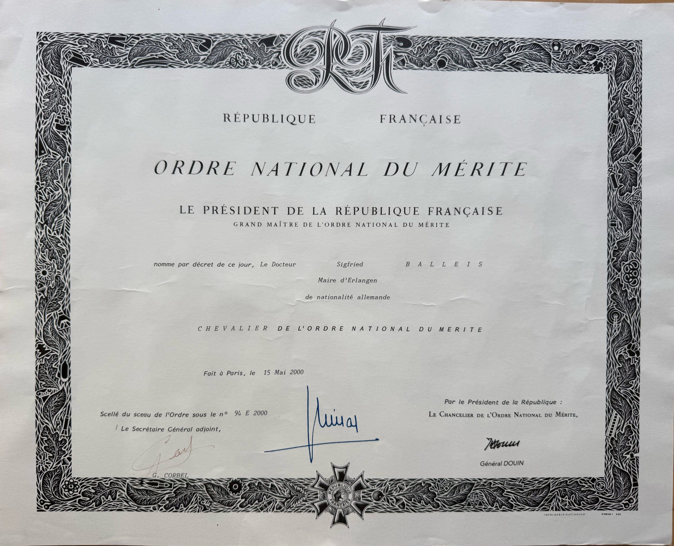 CHEVALIER DE L’ORDRE NATIONAL DU MERITE RÉPUBLIQUE FRANCAISE